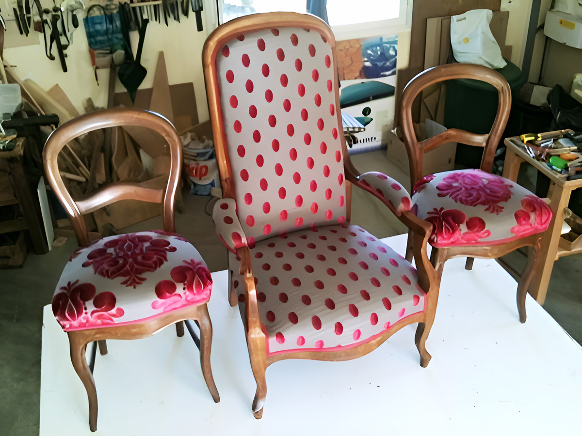 Réfection de toiles de fauteuils de jardin en Batyline® Serge Ferrari